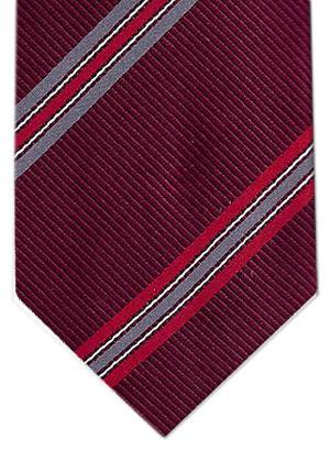 Gravata Jacquard Seda italiana na cor bordô com listras vermelha e cinza.
