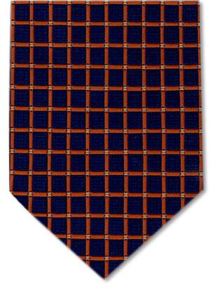 Gravata Jacquard Polyester na cor marinho quadriculada em laranja.