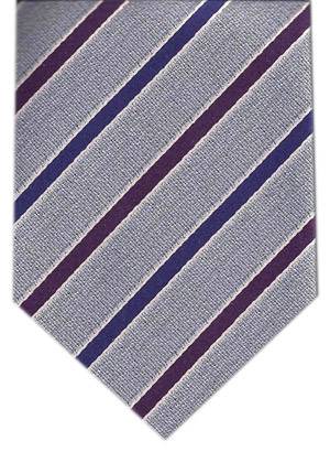 Gravata Jacquard de Seda na cor cinza com listras azul e roxa.