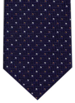 Gravata Jacquard de Seda na cor marinho com detalhes brancos e marrons.